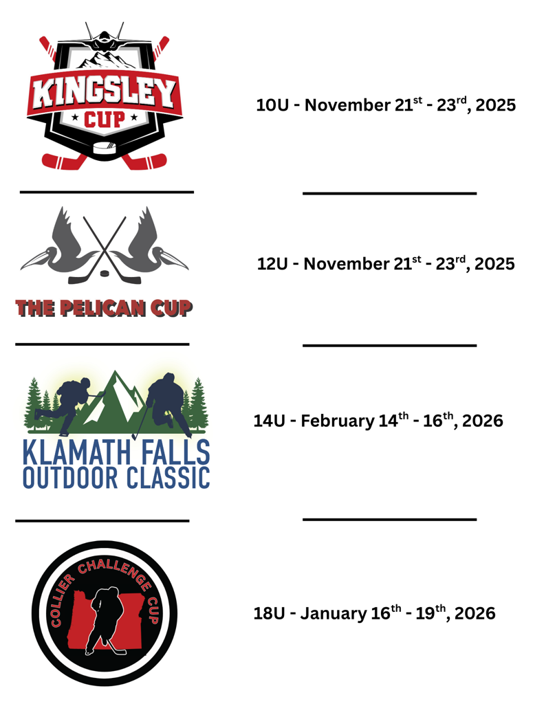 Then join us for one of our action-packed tournaments. We will host tournaments this year at the 10U, 12U, 14U, and 18U levels. New this year, 14U and 18U will be checking tournaments. For questions or more details, please visit our tournament page ( link below) or contact Lynndsi Ray at Lynndsi.R@klamathiceports.org or Wendy Heaton at Wendy@klamathicesports.org!